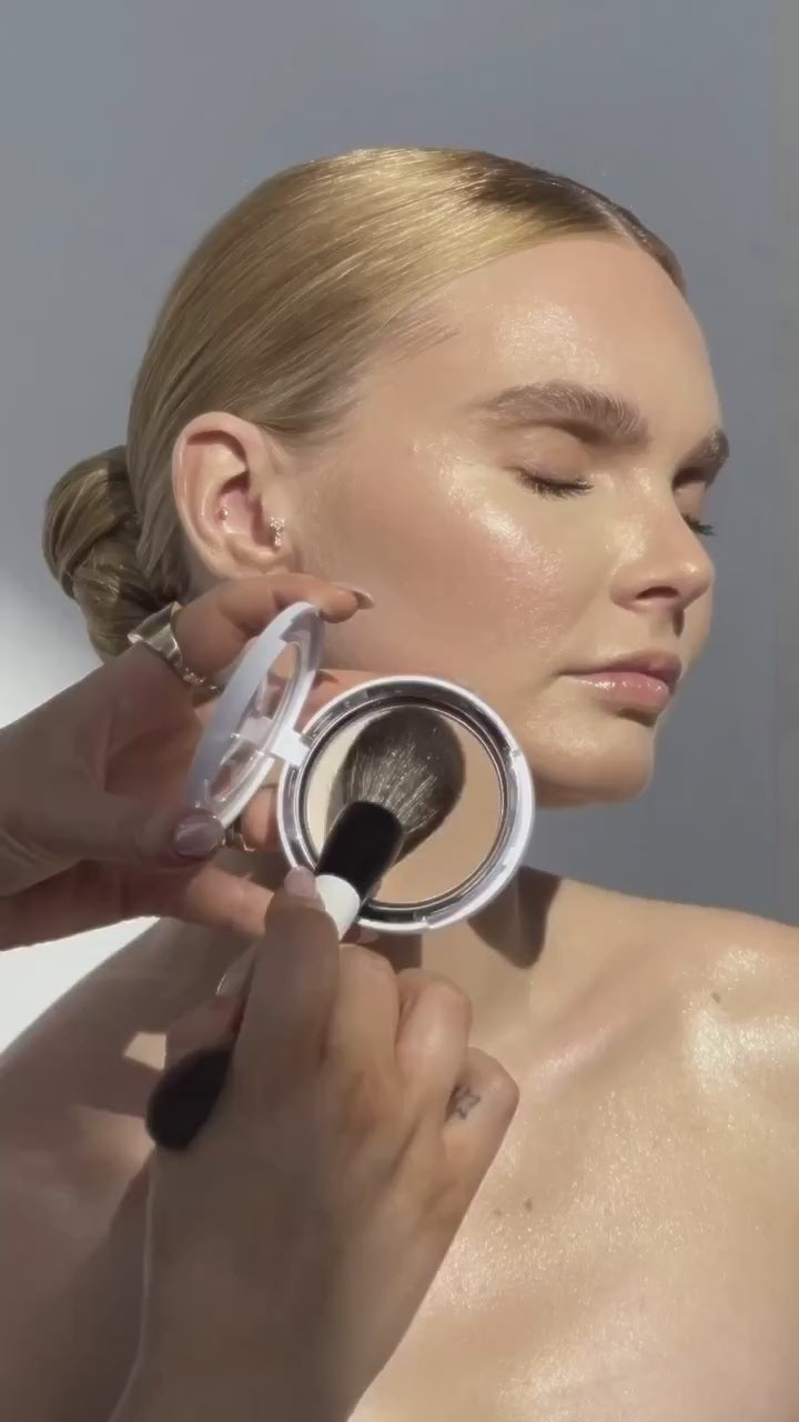 Apply the Perfector over the Enhancer. Swirl the F2 Brush into the powder then sweep all over to perfect, illuminate, and set your complexion.​​