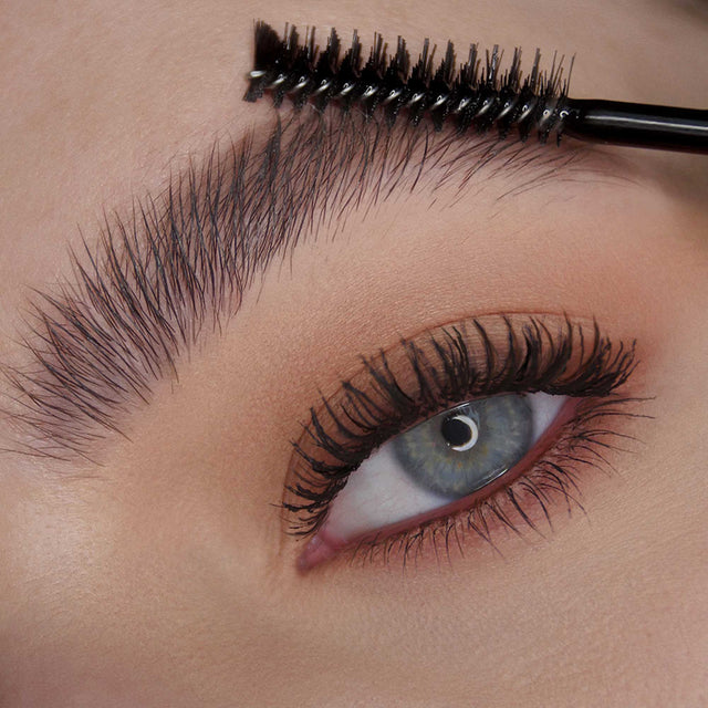 • Use the attached spoolie to comb hairs upward to reveal sparse areas.