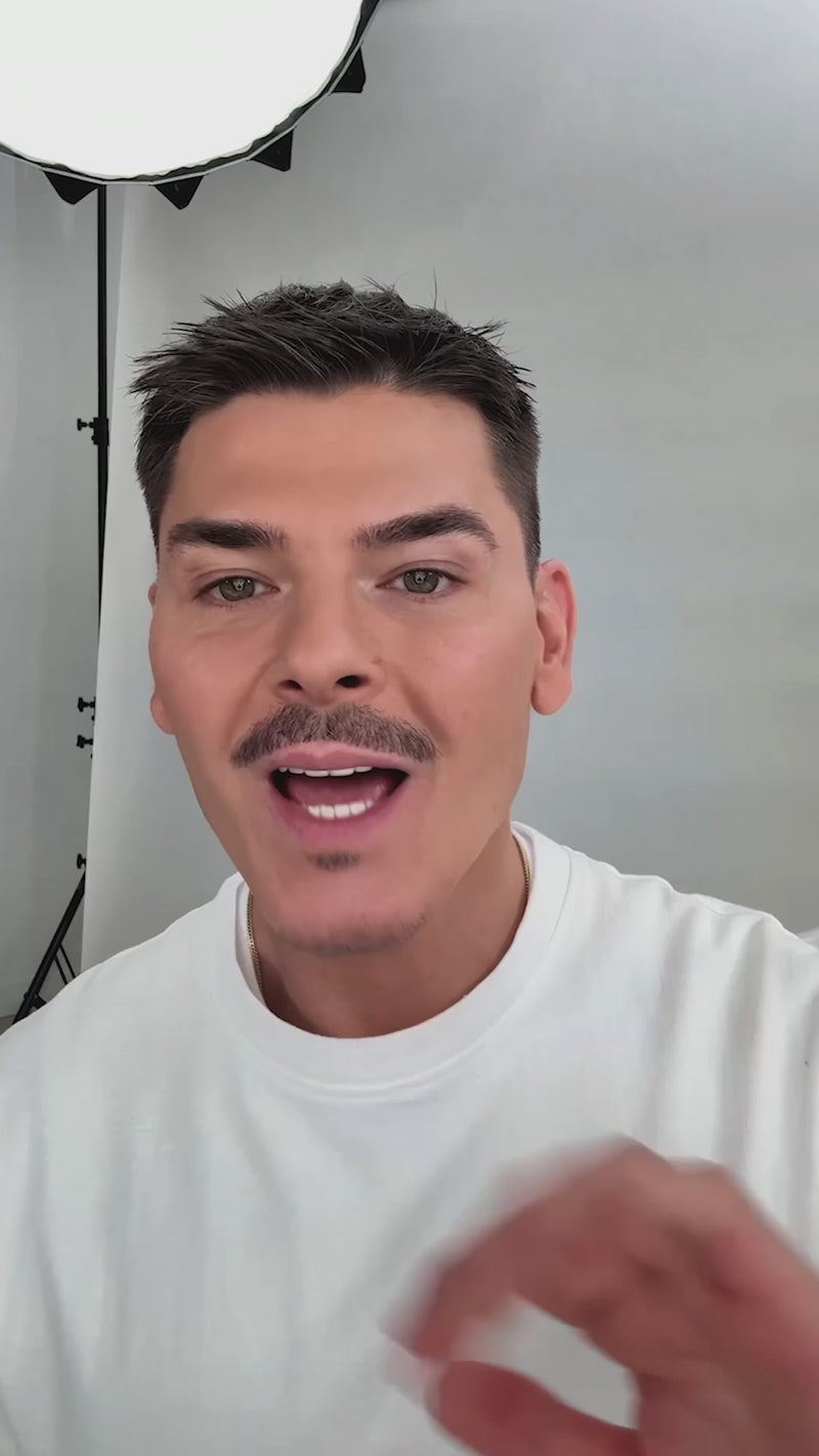 • Sweep product from under the chin down the center of the neck for architectural sculpting.