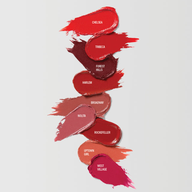 Swipe on silky, satin lipstick, reimagined by Mario and inspired by his hometown, New York City. A single swipe delivers creamy, ultra-comfortable color perfect for luxurious daily wear. This unique formula glides on and grips lips in 18 shades each named after a NYC neighborhood or area code.​