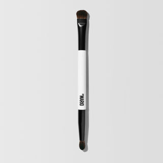 A dual-ended eyeshadow brush with both narrow and dense bristles ideal for applying, shading, and blending all shadow formulas.