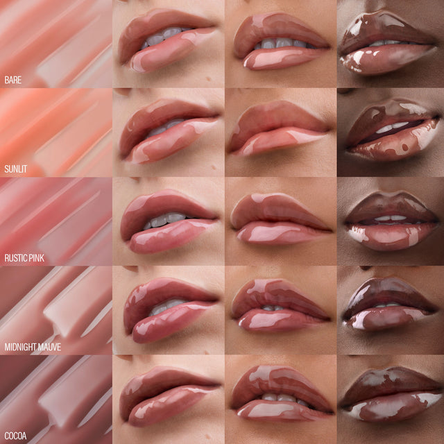 An innovative, non-sticky formula that cushions lips in glass-like shine while locking in moisture leaving lips soft, smooth & hydrated. 11 curated shades effortlessly glide on with a custom doe-foot applicator that deposits the perfect amount of product in every swipe.